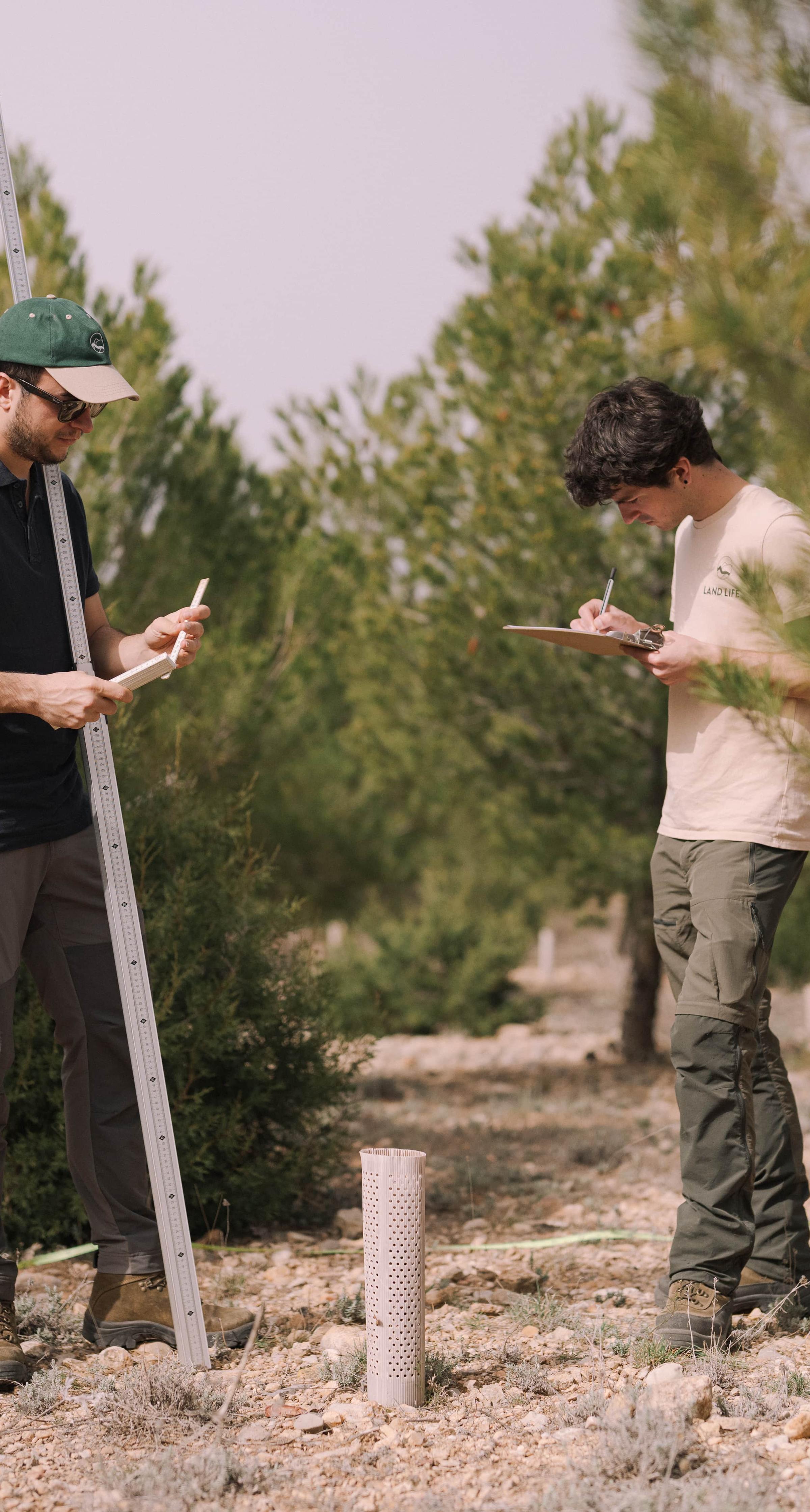 Land Life ha dado prioridad a la biodiversidad, incluso antes de que se convirtiera en un tema tan importante en el sector. Ante la creciente necesidad de informes transparentes, intentamos desarrollar una forma clara de medir la biodiversidad en nuestros emplazamientos. En 2022, pusimos en marcha nuestro primer proyecto de biodiversidad en Grisel (España), en un terreno degradado. Este terreno degradado era ideal para nuestro estudio de seguimiento de la biodiversidad, ya que nos permitía compararlo con lugares de referencia sanos de la región para establecer una base de referencia de la salud del suelo y la biodiversidad. Nos propusimos comprender mejor y mejorar los beneficios para la biodiversidad de nuestros esfuerzos de reforestación y probar herramientas que faciliten y amplíen el seguimiento de la biodiversidad.