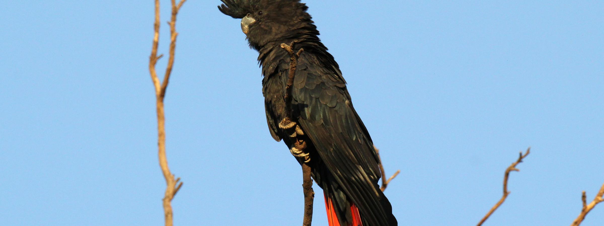 In the few stands of native trees that remain on the site, the elusive South-Eastern subspecies of the Red-tailed Black Cockatoo (Calyptorhynhus banksii ssp graptogyne), listed as endangered by the state authorities both in Victoria and South Australia, can be seen chewing on the seed pods of the Buloke tree.